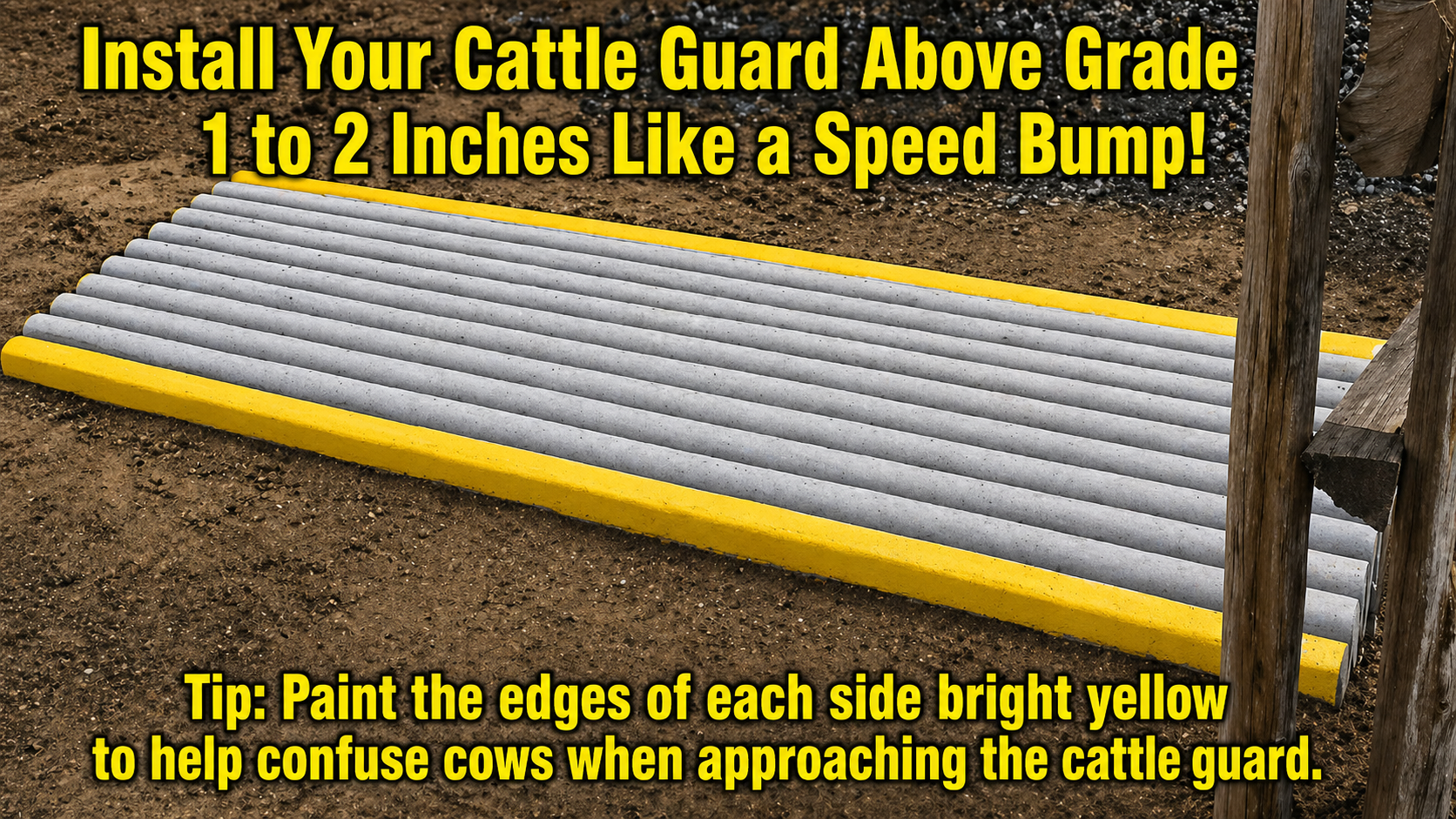 Choose a level, well-drained location aligned with the roadway or gate. Compact the base, use gravel as needed, then set the cattle guard square and level.